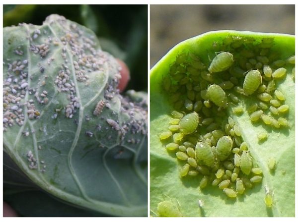 - خنفساء أوراق الملفوف (حشرة خضراء داكنة صغيرة تدمر الأوراق) - غبار بمزيج من الرماد والتبغ؛ Aktellik.