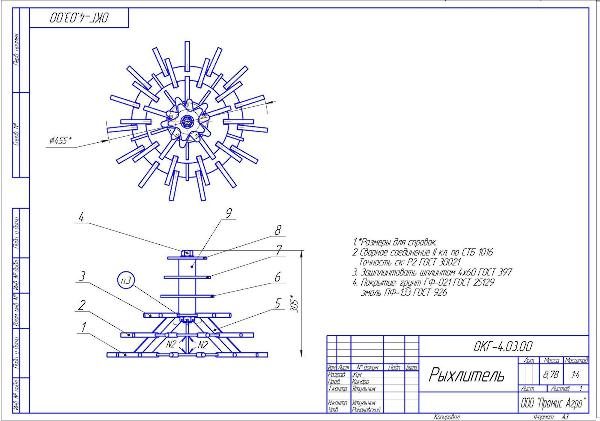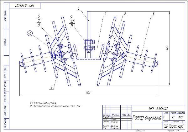 The assembly of the device is carried out on a Ø25 mm pipe. Using jumpers, steel discs are fastened to each other, starting with the largest and ending with the minimum. There are developers who use 5 and 6 facets instead of disks. The distance between them should be 18 centimeters, and the maximum disc Ø 36 centimeters. For the teeth used steel bar, cut into 40 pieces.