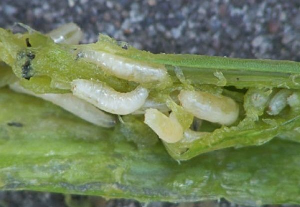 - Onion fly. She lays eggs on scales and in the soil. Harm to the plant is caused by its larvae. Damaged bulbs become soft, begin to rot, and shoots turn yellow and dry. The activation time of the onion fly is May-June. You can fight it with tobacco dust, with the addition of ash and black pepper. It is possible to carry out dusting or spraying this infusion. Insecticides of a broad spectrum of activity will also help. Experts recommend taking preventive measures in early May.