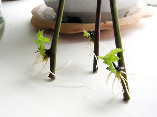 If a spring transplant is carried out by cuttings, they are settled in a prepared trench and covered with a layer of soil (up to 8 cm). Planting is covered with a layer of mulch, which includes sawdust, hay, humus.