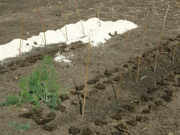 At the transplanting site, all weeds are removed and the furrows are made up to a depth of 30 cm. Compost or old manure mixed with soil is added to this trench.When transplanting the roots of the plants straighten, ensuring that they are located horizontally, covered with earth and compacted. The upper kidney is placed at a height of 2 cm above the ground.