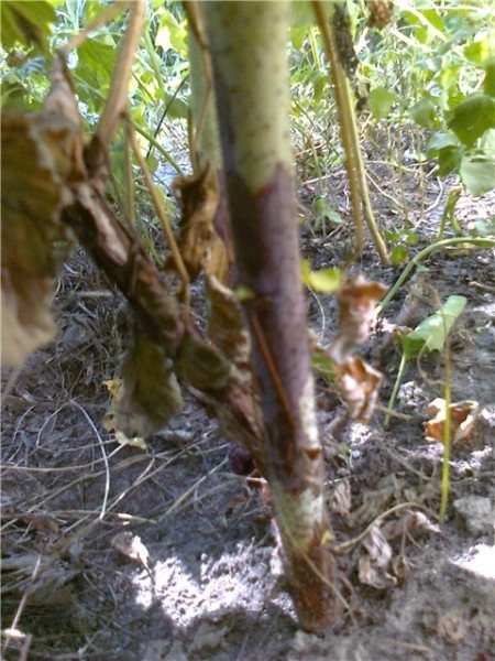 - Purple spot - on young shoots appear brown spots that grow and lead to the complete withering of the affected area. It must be removed so as not to infect healthy branches. For prevention, in the springtime, the bushes are sprayed with 1% Brodsky liquid and Hom.