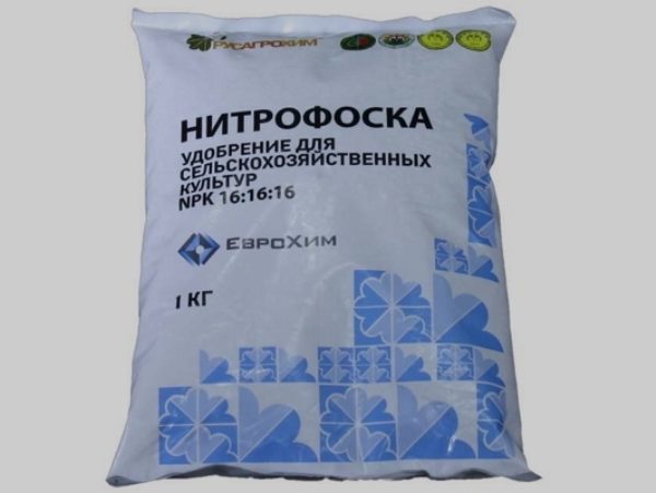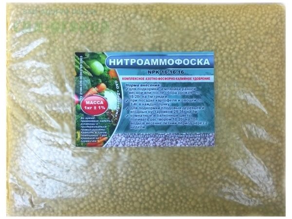- Nitroammofosk (nitrogen 17%, phosphorus and potassium).