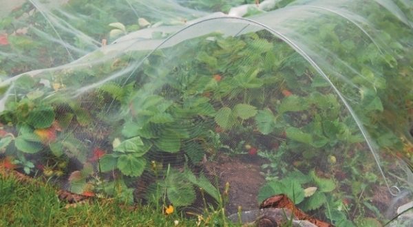 Installation of shelters strawberry beds can begin almost immediately after the snow. Installed from each other through 1 m iron or plastic frames of the tunnels are covered with foil or covering material. At the onset of steadily warm days and at the beginning of strawberry flowering, the shelter should be lifted for airing and pollination of plants by insects.