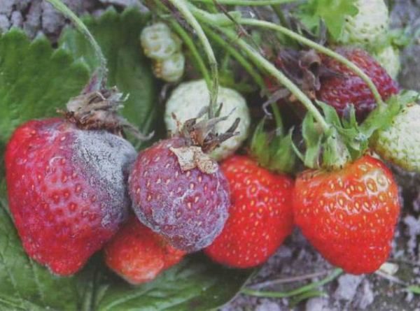 Mostly strawberries are damaged by gray mold.which may occur in cool, wet weather. Fruits become soft with color gray from decay. During rains, experts recommend for preventive purposes of the disease, sprinkle sawdust between rows.