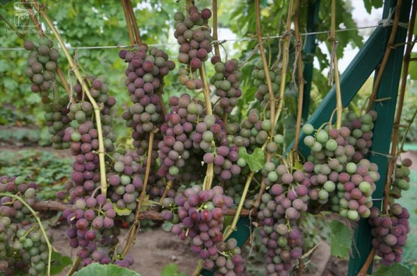 During the first summer, care consists of regular watering, loosening and weeding from weeds. Under favorable conditions, the grapes will take root well and reach a height of 1-2 meters in the first year.