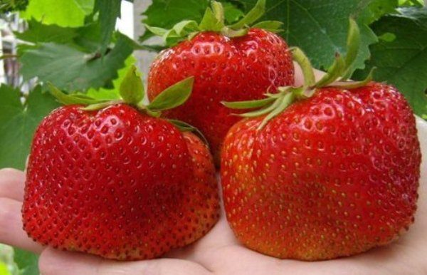 Most modern large-fruited strawberry hybrids are genetically programmed to intensively bear as a one-year crop. The mass of berries reaches 20-30 grams. When transporting virtually no damage. Gardeners note the resistance of large varieties to diseases and pests. The taste of strawberries juicy, sweet, inferior in flavor to small-fruited.