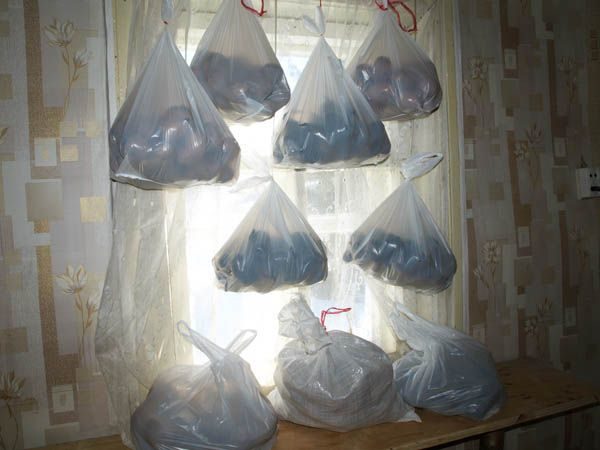 - En polietileno. Debe colocar los tubérculos en paquetes de 10 piezas y hacer muchos orificios pequeños para el paso del oxígeno. Se recomienda colgar los paquetes en la habitación iluminada, pero no bajo la luz directa del sol. Mantener hasta que los primeros disparos.