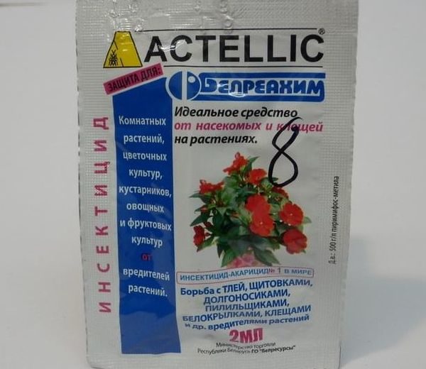 - Actellico - Composición tóxica. La herramienta está diseñada para combatir las garrapatas, se recomienda tratarlas para lesiones masivas, cuando otras drogas no dan el efecto deseado. Al rociar las plantas es necesario no olvidar que el medicamento es altamente tóxico. Los tratamientos deben llevarse a cabo al aire libre o en interiores con buena ventilación;
