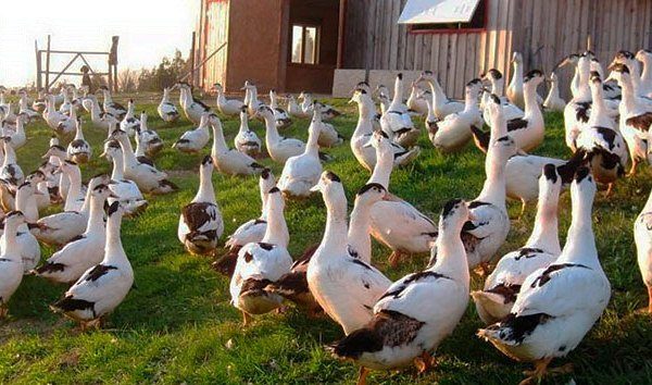 Creciendo en fincas de granja. Mularda no difiere del contenido de patos de otras razas y cruces. En el verano, es económicamente ventajoso mantener un ave en las pistas, equipada con comederos y bebederos especiales. Por la noche, los patos son conducidos al establo y cerrados. Los mularardos rara vez se dejan para el invierno, ya que no son adecuados para la reproducción, y durante la temporada se puede preparar un pato para el sacrificio del patito. Debido a este método de cultivo, no hay necesidad de capital y edificios bien aislados. Para el contenido apropiado de mulard. Una habitación bastante simple con buenos pisos y sin orificios a través de los cuales pueden penetrar ratas y otros depredadores. No debe haber borradores en el cobertizo. En el lado sur de la casa, hay un pozo, el agujero sobre el piso debe ser de 5-8 cm y cerrado con una puerta.La casa debe construirse sobre la base del número de patos por metro cuadrado. m 3 cabezas. En la carrera el ave debe sentirse libre, por lo tanto, 1 metro cuadrado está asignado para 1 cabeza. m cuadrado Para la alimentación, se utilizan comederos especiales con una longitud de 110 y un ancho de 23 cm para un ave adulta, y para el ganado joven 100х14.5. cm. Se hace una partición encima de los comederos para que las aves no dispersen la comida. Para el agua, es mejor usar bebederos de pezones.