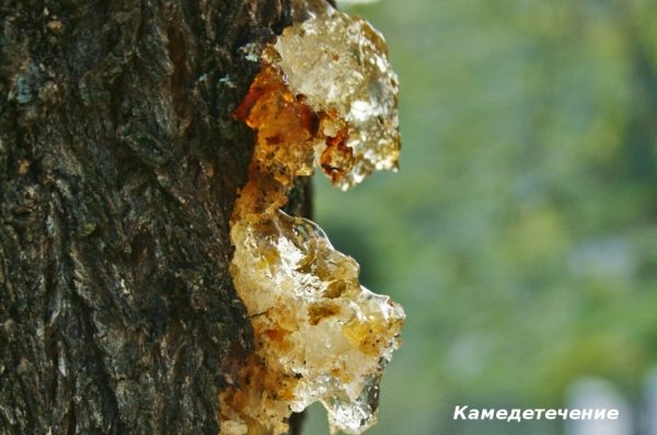 - Comedicacion - La corteza del árbol está fuertemente exudada y un líquido de color ámbar pegajoso comienza a rezumarse.