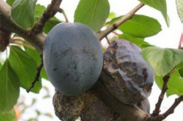 - Monilioz - Enfermedad fúngica, provocando frutos podridos. Cuando están infestadas, las inflorescencias se desvanecen, las hojas se cubren con manchas marrones y se caen, las frutas gradualmente se cubren con podredumbre blanca, se momifican y permanecen colgadas de las ramas. Para combatir el uso de la enfermedad: