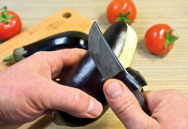 Questa tecnica è adatta solo per quei casi in cui è previsto l'uso di una verdura sbucciata per la ricetta. Hai solo bisogno di sbucciare il frutto dalla pelle con un coltello. Insieme a questo lascerà e sgradevole amarezza.