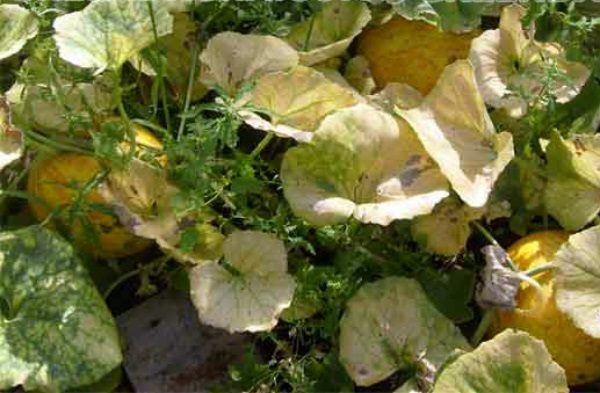 Il secondo problema di melone è il fusarium. È distribuito attraverso il terreno da semi e residui di vegetazione. La malattia si diffonde rapidamente, le piante possono morire nel giro di pochi giorni. Tali virus sono prevenuti dal trattamento con composti chimici.