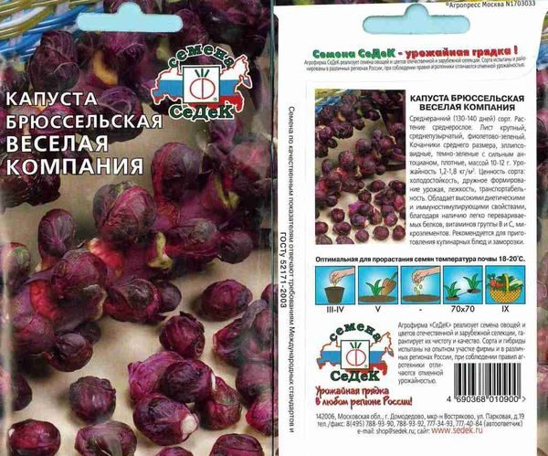 - Compagnia allegra. Cultura Sredneroslaya, teste di cavolo denso e molto gustoso, tonalità viola;