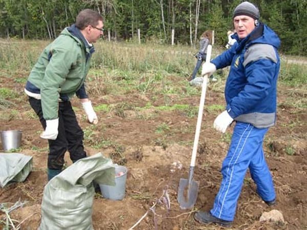 - una persona scava sotto il tubero. Per fare questo, devi guidare una pala vicino al tubero e sollevarla in superficie;