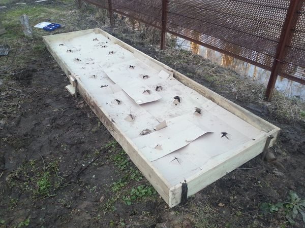 Cartone domesticoProducono scatole per elettrodomestici, adatte per piantare patate. Hanno bisogno di chiudere l'intera area della cresta. Prima di posare a terra su cartone, creare sezioni trasversali.