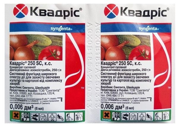 - Quadris - uno strumento che non solo protegge da molte malattie, ma migliora anche la crescita delle patate.