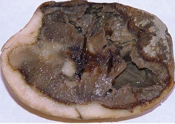 sviluppa questa malattia solo durante la crescita, quando conserva le patate, si congela.