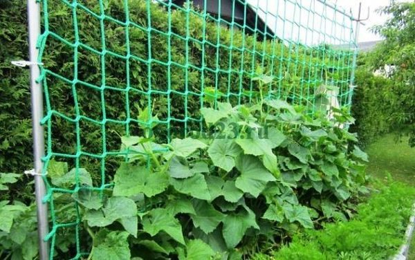 Le reti speciali sono ideali per legare. La rete è tesa su un traliccio o su un supporto, ei cetrioli iniziano a piegarsi su se stessi. In una serra, i cetrioli sono legati con una corda a cantieri orizzontali. Puoi anche eseguire lo snap ad archi o creare un supporto tu stesso.