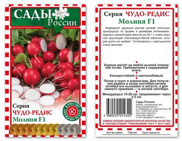 - Zlata ha colore dorato brillante del frutto con una superficie leggermente ruvida. Il periodo di maturazione è di 22-28 giorni. Il peso medio del ravanello è di 21 grammi;
