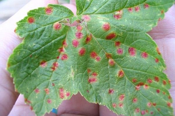 Ruggine di vetro inizia a verificarsi tra la fine di maggio e l'inizio di giugno sotto forma di vesciche sulle foglie di colore arancione. La malattia non può solo distruggere il raccolto, si estende alle foglie e ai germogli di ribes.