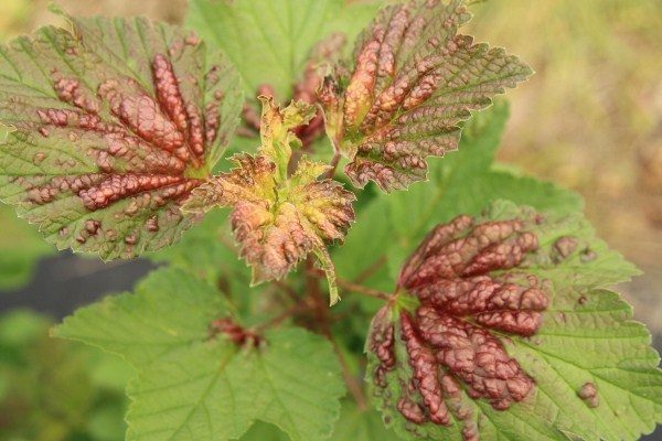 Ma il ribes soffre non solo di parassiti. Antracnosi si forma sui cespugli all'inizio dell'estate, le foglie di ribes sono coperte da piccole macchie marroni che crescono e coprono l'intera foglia.Dopo di ciò, le foglie si arricciano e cadono, se non viene intrapresa alcuna azione al momento, l'arbusto muore in 3 anni.