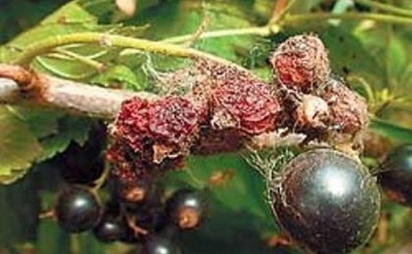 Talpa dei reni - l'insetto attacca l'arbusto all'inizio della primavera, i boccioli e le bacche si asciugano e cadono, i getti diventano marroni e quindi asciutti.
