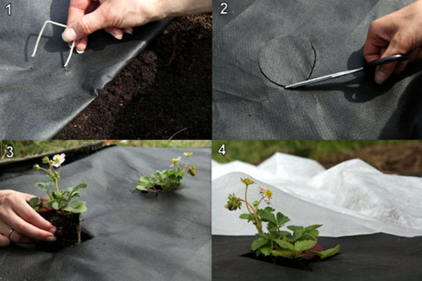 Grazie alle sue caratteristiche, consente aria, acqua e trattiene i raggi del sole. Cespugli di fragole piantati sotto il tessuto di copertura ben protetto dai parassiti. Le bacche non marciscono e rimangono sempre pulite. L'agrofibra non tessuta va in vendita con nomi diversi.