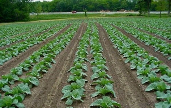 - Plantio de mudas de repolho em terreno aberto
