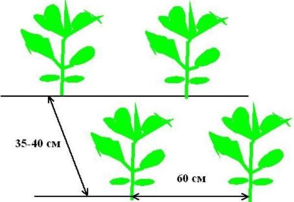 Se o remo duplo é usado, então, para evitar o espessamento da segunda linha, é melhor plantar em um padrão quadriculado.