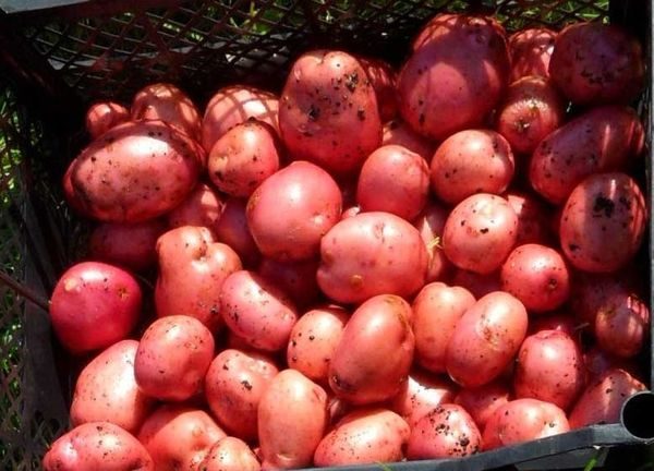 - Alena - batatas “vermelhas” a meio temperado, sem medo de dias secos, tubérculos de tamanho médio - cerca de 60-80 g.