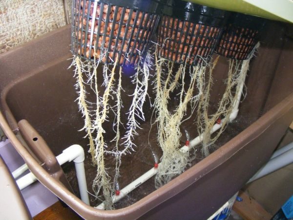 - sistema de água. Uma das opções mais fáceis. A planta é mantida em uma plataforma flutuando em solução. As raízes estão imersas em líquido. Para fornecer oxigênio a eles, a aeração é realizada com uma bomba, caso contrário, a solução nutritiva terá que ser atualizada periodicamente;