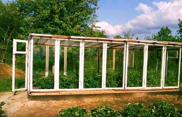 Estufas de vidro de caixilhos de janelas são populares. Mas as persianas multicoloridas, parcialmente montadas sem caixas, são difíceis de personalizar. A estufa abre a partir do fundo, e essas venezianas dobráveis devem seguir em fila ou ser interrompidas pela largura mínima das inserções. E a fratura do telhado requer ajuste. Como resultado, muitas vezes a combinação desejada é selecionada da metade dos quadros.