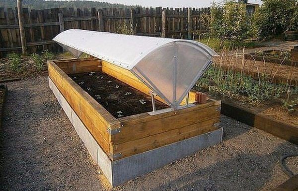 - Elementos de apoio - Freqüentemente são canos, montados em pinos presos no chão, cobertos por um dossel dobrável. Eles são dobrados por um arco, e se você usar dois tubos conectados por um joelho, então um arco. Outras opções - molduras ou armações (vidradas ou policarbonato), abertura para ventilação, bem como madeira (é tratada com agente repelente de água adequado).