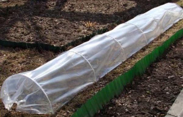 Para fazer uma simples estufa de túnel de filme, eles pegam um tubo de 6 metros, dobrando e inserindo cada um dos pinos presos no chão, não completamente vestidos. Mais opção vencedora: os tubos, por exemplo o polipropileno, estão ligados a um joelho de 3 m, ou melhor, a 3,5 m (encosta sul) x 2,5 m (encosta norte), construídos em várias vãos ligados por arcos tubulares.