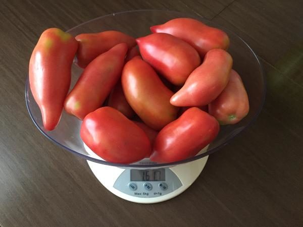 Os frutos são oblongos, densos, carnudos. Ideal para uso fresco e conservas. O peso de uma fruta pode variar de 50 até 100 gramas. Ela tolera o transporte, tem excelente qualidade de manutenção. A cor das bananas vermelha e rosa e amarela é uniforme, muito bonita. Devido a isso, os tomates têm uma boa apresentação e são adequados para o comércio.