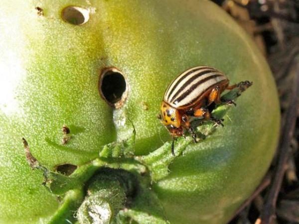 - Besouro de batata de Colorado é uma perigosa praga de tomate.