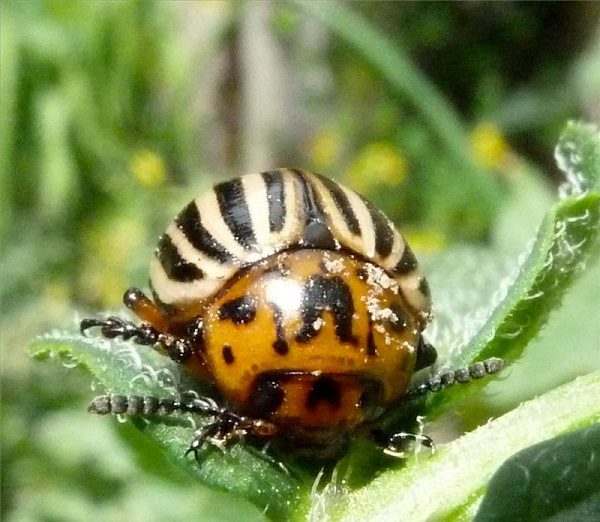 - Besouro de batata de Colorado em uma folha de tomate