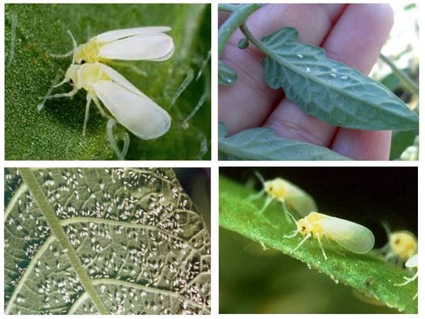 Inseto de pequeno tamanho com asas brancas assenta na parte de baixo do lençol com hordas inteiras. Uma iguaria favorita é a seiva das plantas. Além disso, os parasitas carregam uma série de doenças, infectam os leitos de tomate com resíduos. Os arbustos afetados começam a desaparecer.