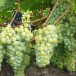 - Mascate Este híbrido de tabela superearly é obtido cruzando as variedades de Delight e Frumoas Albe. A planta entra em frutificação em 2-3 anos após o plantio. O período de vegetação é de 105 dias. A colheita pode ser realizada no início de agosto. Bagas redondas grandes. Pele branca que fica âmbar quando o feto atinge a maturidade plena. A polpa se distingue pela sua densidade, suculência com sabor equilibrado e leve aroma de moscatel. Teor de açúcar - até 25%, acidez 7 g / l.