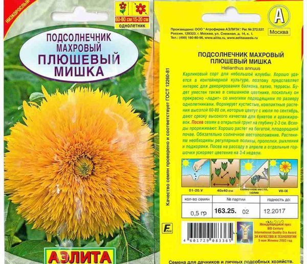 - Ursuleț de pluș. Planta anuală are o dimensiune compactă (de până la 1 m) și infloreste cu flori duble destul de mari, pictate în tonuri de culoare galben strălucitoare. Perioada de înflorire este întârziată până în toamnă.