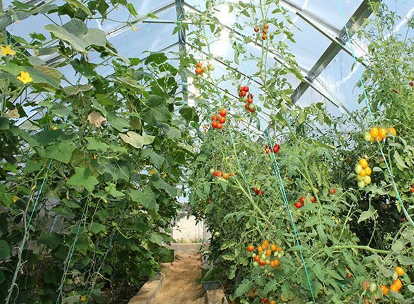 Respectând regulile cartierului pe paturile de seră, sunt create condiții favorabile pentru dezvoltarea ambelor culturi. Ca rezultat - randament ridicat al legumelor fără pierderea gustului.