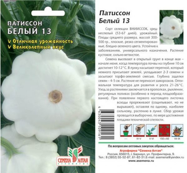 - Alb 13 - varietate cu tufișuri dezvoltate, puternice, fructe albe, mijlocul sezonului. Productivitate - până la 3,5 kg de fructe tinere de uz general. Una dintre cele mai bune soiuri de cultivare în soluri deschise.