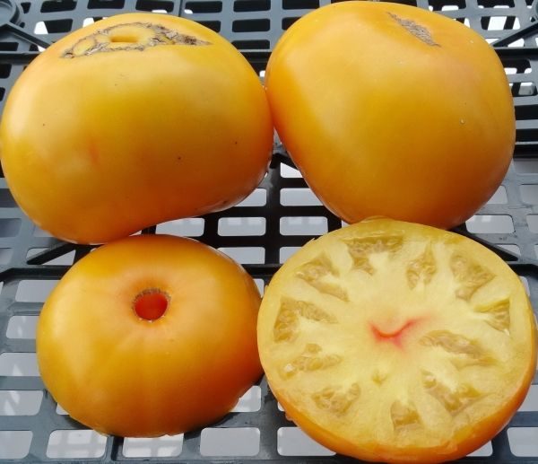 Este o rosie înaltă timpurie, care are nevoie de un jar. Forma rotunjită, cântărită ușor, cu 200 până la 500 de grame de roșii. La maturitate, au o culoare galben strălucitoare. Gusturile sunt excelente, au o aromă ușoară de fructe. Fructele sunt foarte suculente, pot fi folosite atât pentru consumul proaspăt, cât și pentru conservare. Productivitatea este foarte mare.