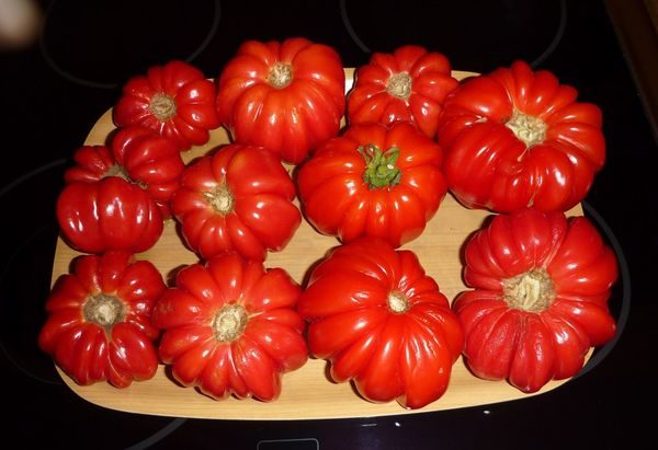 Cele mai mari fructe sunt formate la baza tufișului. Randamentul și rezistența la boli sunt medii. Nu este rau transportat. Greutatea unui fruct poate depăși 500 de grame, culoarea la maturitate - roșie. Pielea este subțire, carnea este fără vene, sunt puține semințe. Utilizat în principal pentru consumul proaspăt, dar poate fi și conservat.