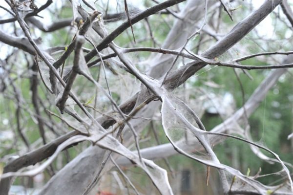 Unele omizi din aceeași molie de păducel țese cuiburi speciale de frunze în care trăiesc și se hrănesc.