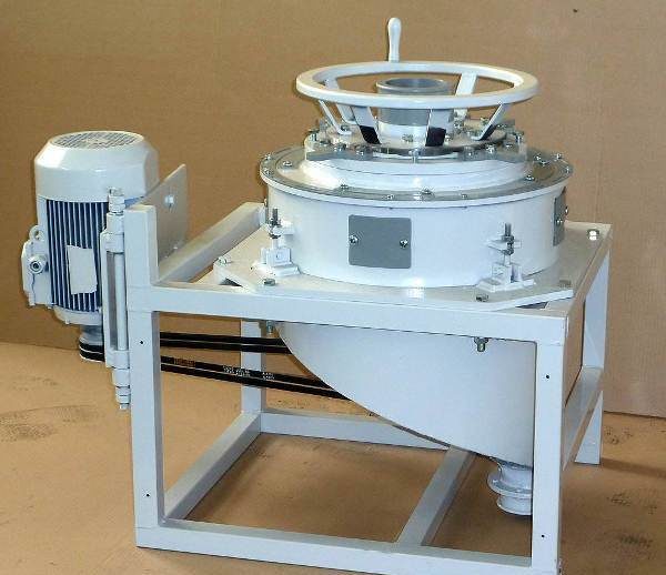 Dispozitivul de ridicare alcătuit dintr-un buncăr și o tambur care se rotește în el cu 54 cuiburi. Cu asta în acest design, puteți personaliza zdrobirea pe piulițe mici și maricare ajută la îmbunătățirea calității procesării. Acest concasor este acționat de un mecanism manual de rotire, principiul de funcționare este similar cu munca unui măcinător de carne.