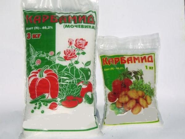 - uree. 500 grame de uree se adaugă la 10 litri de apă. Pe un copac, sunt suficient 2,5 litri de soluție.