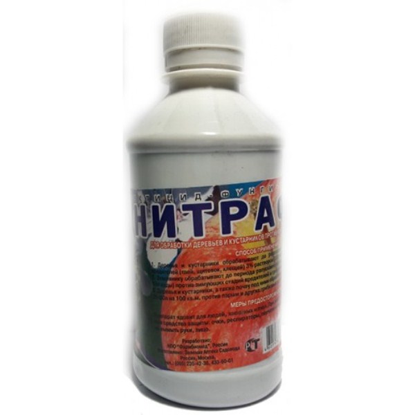 - nitrofenului. Pentru tratamente, se utilizează o soluție de 3%, se adaugă 300 ml de preparat la 10 litri. Pentru o plantă tânără, vor fi necesare 1,5 litri, pentru un adult, de la 3 la 5 litri;
